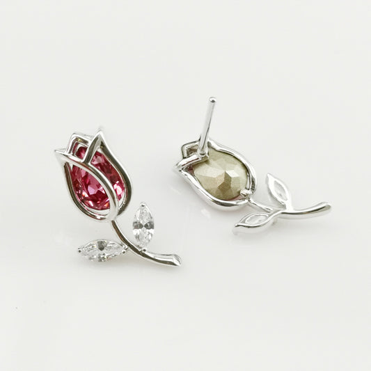 925 Sterling Silver Freshwater Pearl Crystal Flowers Stud Earrings