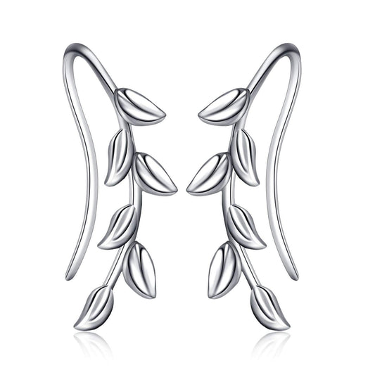 925 Sterling Silver Leaf Climber Cuff Earrings