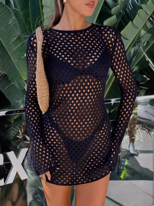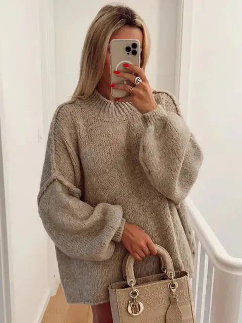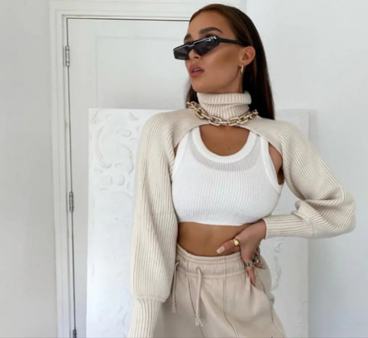 Knitted Hollow Turtle-neck Long-sleeve Sweater