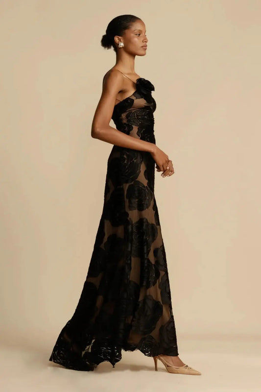 Mesh Embroidered Lace Long Dress