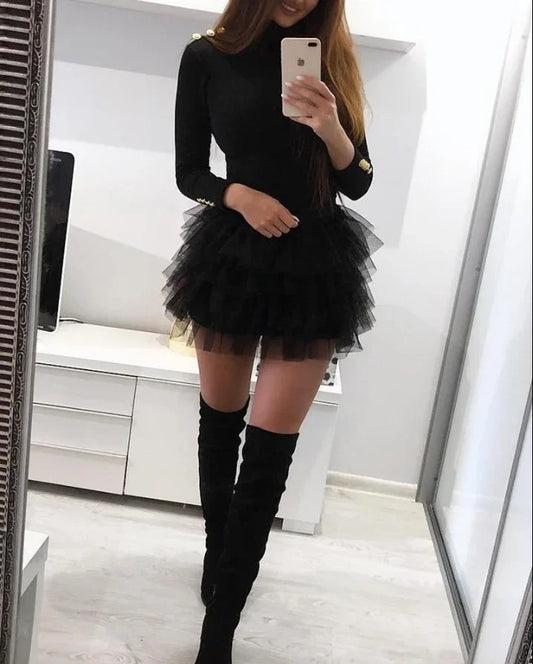 Mesh Ruffle Layered Long Sleeve Mini Dress