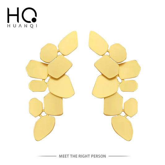 Geometric Flowers Gold Color Plated Long Drop Earrings