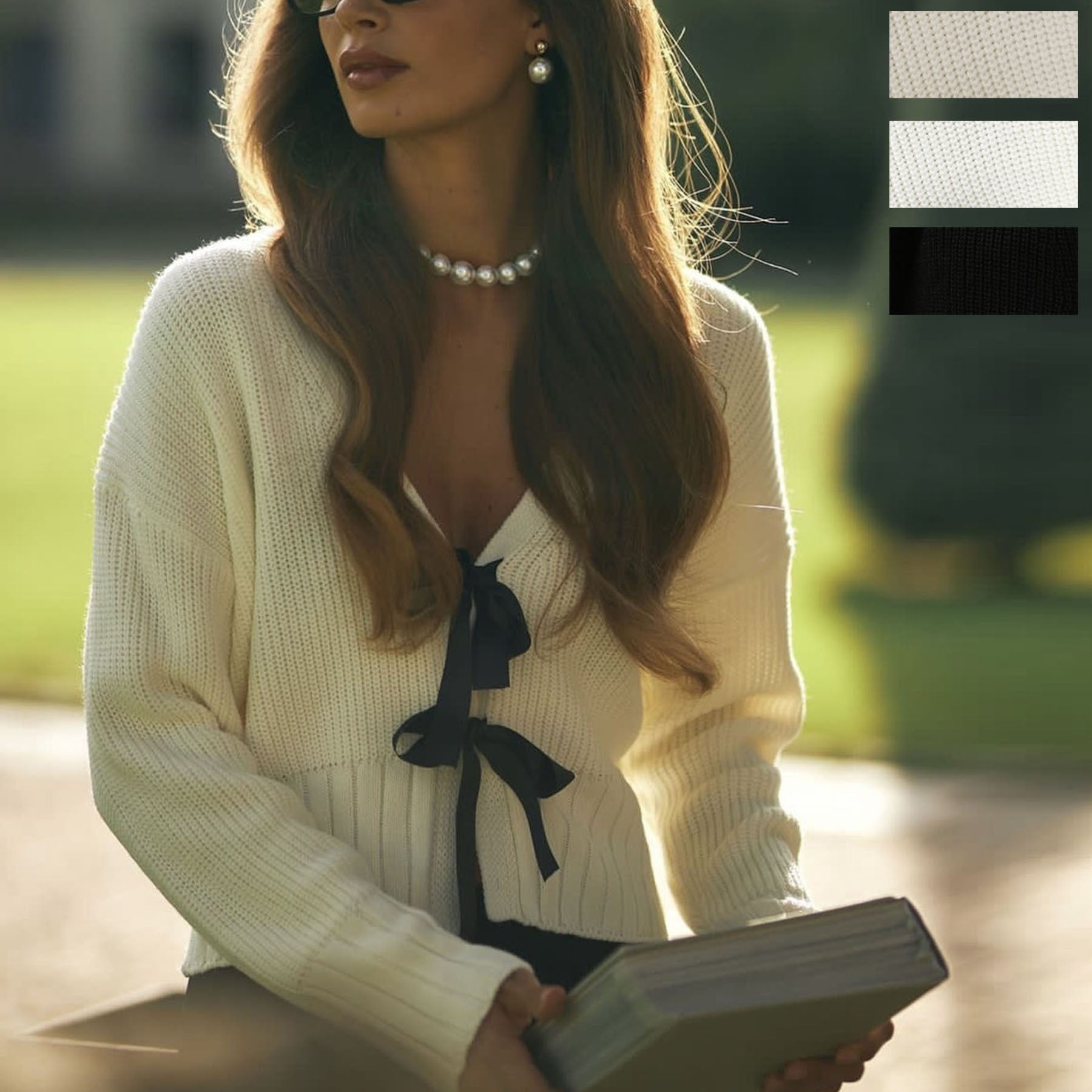 French-style Bow Sweater Cardigan