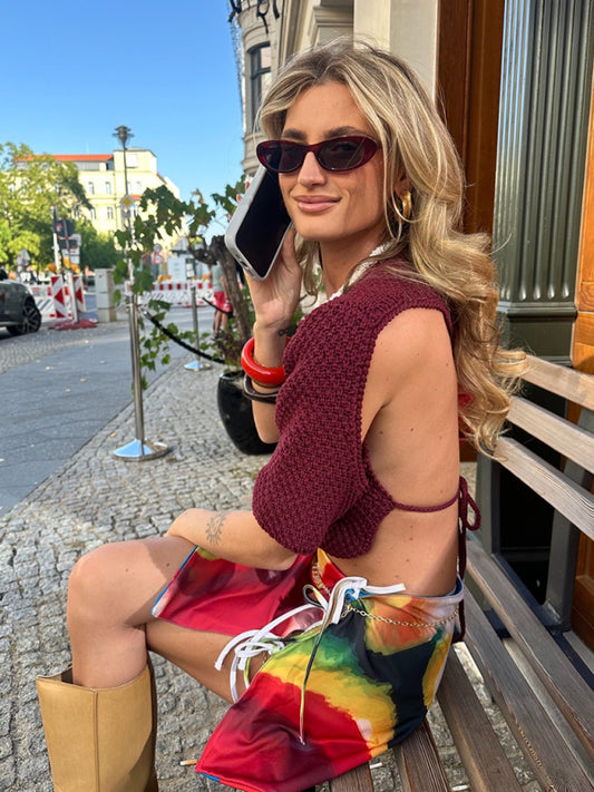 Backless Knitted Drawstring Cropped Sweater
