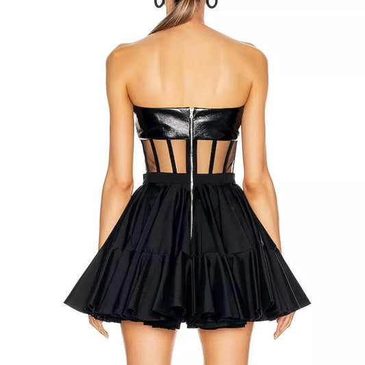 Vestido de manga princesa con top de tubo y hombros descubiertos