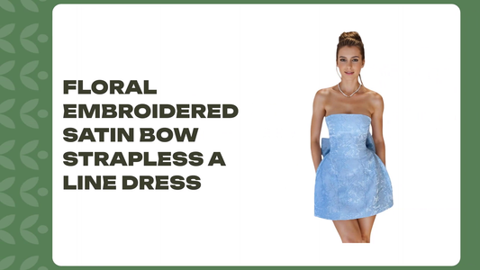 Floral Embroidered Satin Bow Strapless A Line Dress