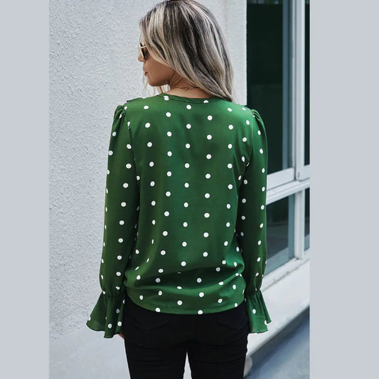 Polka Dot Ruffle Long Sleeve Blouse