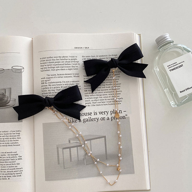 Color: Pearl tassel bow pair clip, bow pair clip, streamer pair clip, #black, #beige, #wine red