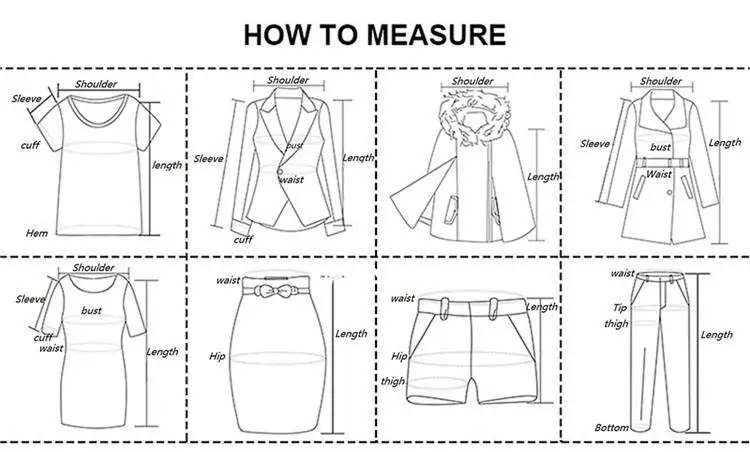 This clothing size information is just for reference only, and may have 2-3cm differences due to manual measurement.