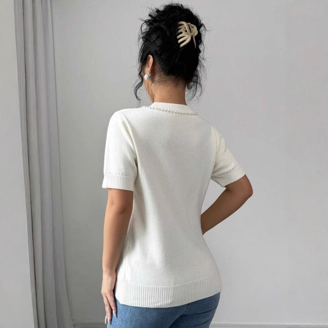 Rhinestone Bow Short Sleeve Slim Top