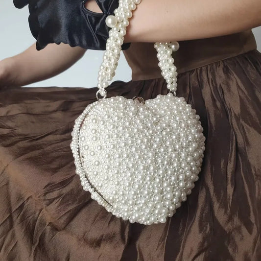 Hand Beaded Pearl Heart-shape Handbag