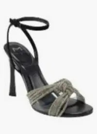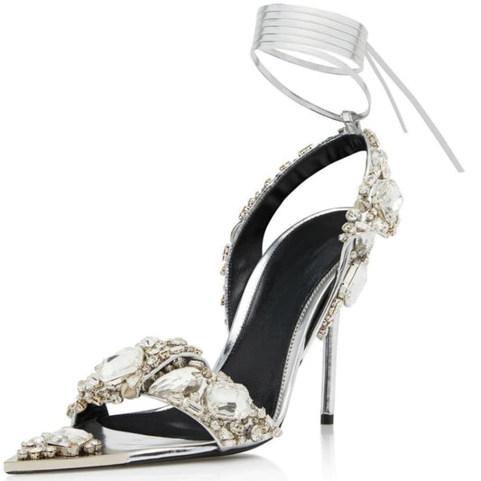 Fuazuzu Rhinestone Diamond Pointed Open Toe Lace Up Strappy Backless High Heel Shoes