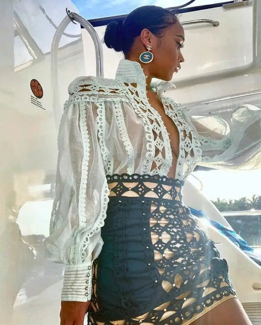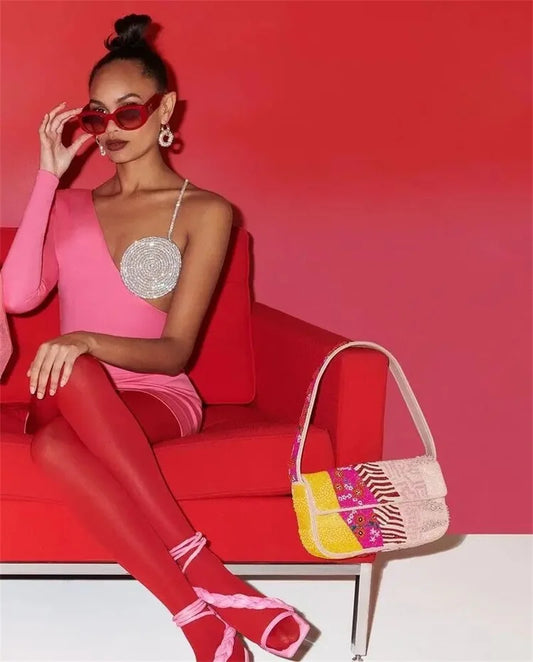 One Shoulder Sparkling Crystal Long Sleeve Mini Dress