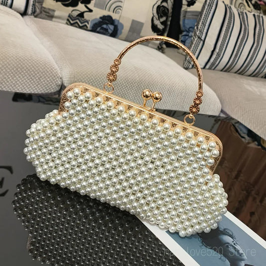 Pearl Breaded Top-Handle Hand-woven Handbag